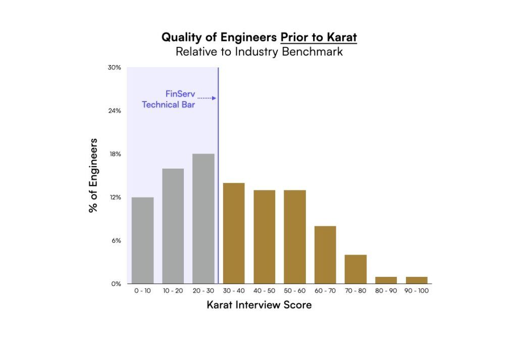 A global Fortune 100 FinServ institution was struggling with low-quality contractor talent and underperforming teams. To fix this, they partnered with Karat to introduce a consistent technical standard for all contractors and track the performance of their ITSPs.