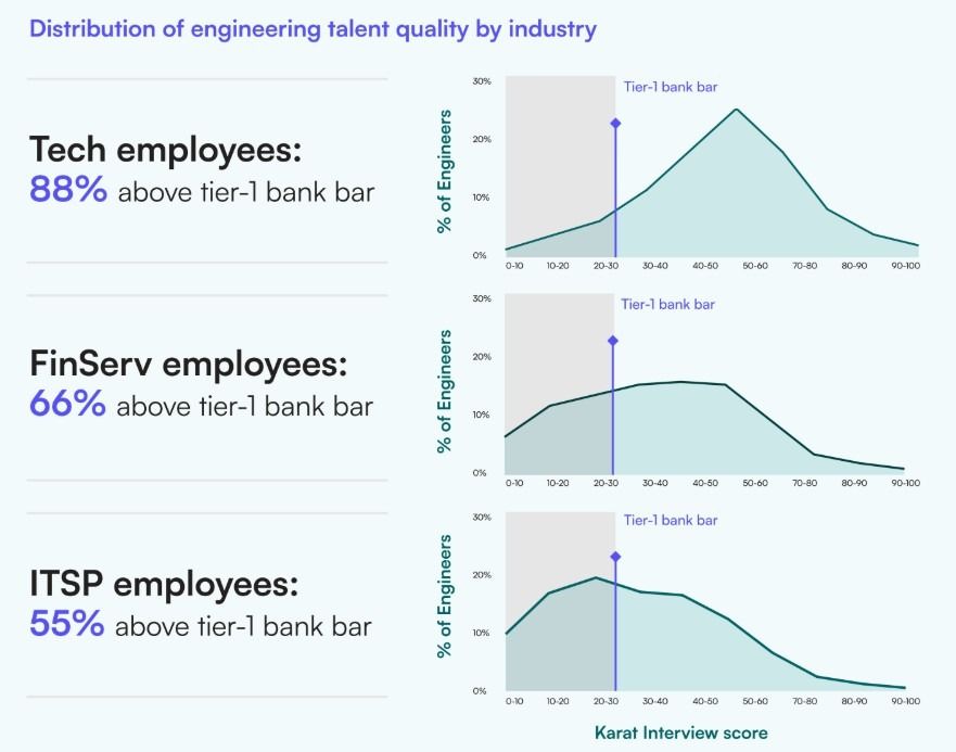This difference in talent quality slows down financial services and enterprise engineering delivery, especially during AI transformation. The solution requires moving from subjective evaluation to objective measurement. By implementing standardized assessments, role-based benchmarks, and shared visibility into talent quality across enterprises and ITSPs, both sides can make better placement decisions and improve talent quality.