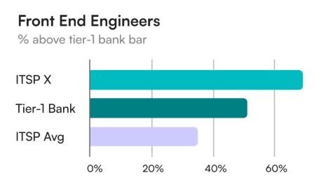 Use benchmark data to see where engineers excel by role, region, or seniority. There are certain roles and use cases where contract engineers outperform their peers. For example, we found that one ITSP’s front end contractors not only outperform the ITSP average but also the tier-1 bank bar. By knowing where your talent pool excels, you can lean into those strengths and differentiate yourself by becoming the go-to partner for specific roles or skills.