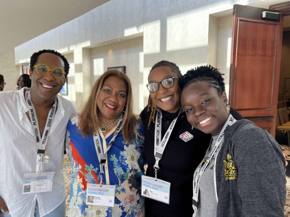 Rafael, Portia and Roz pose with Mikaila Ulmer